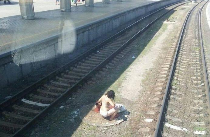 «На вокзалі невідома жінка вирішила помитися прямо на коліях з пожежного гідранта», – йдеться в повідомленні.