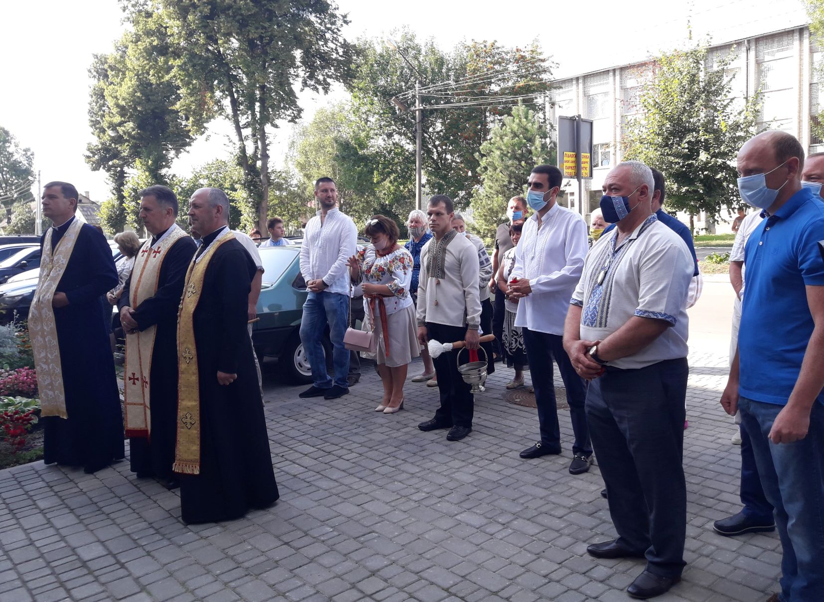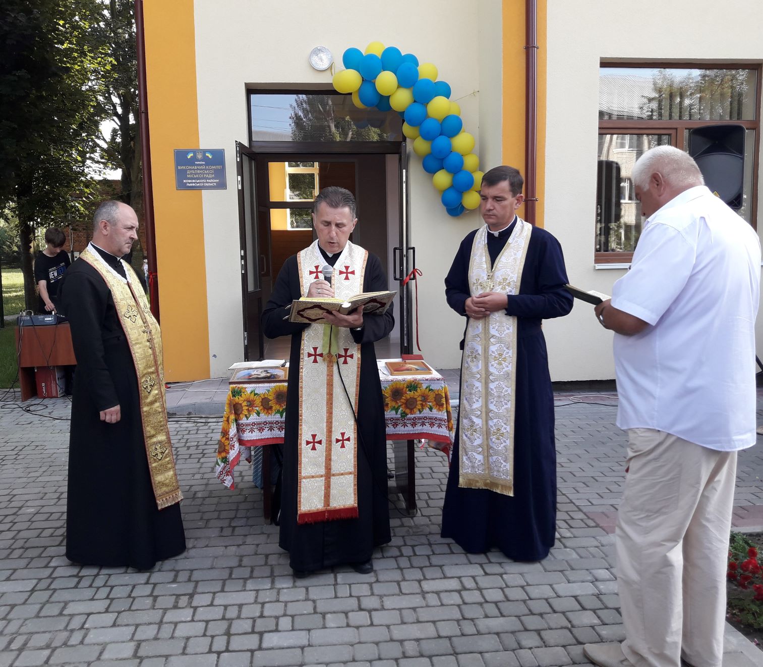 Після церемонії перерізання стрічки настоятелі місцевих храмів о.Володимир (Високінський) о.Іван (Сас) та о.Дмитро (Цюпка) поблагословили та освятили новозбудоване приміщення, щоб воно служило на добро мешканцям та стало осередком розвитку громади.