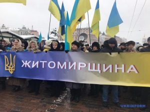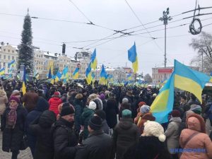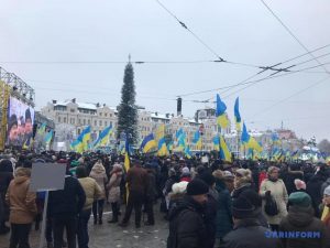 Як повідомляє кореспондент Укрінформу, серед присутніх – багато і молодих, і літніх людей, також є діти, які прийшли разом із батьками.