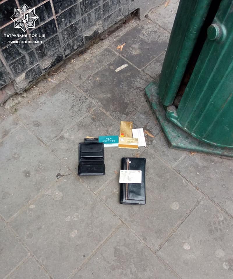 Сьогодні, 9 грудня, о 12:30 небайдужа львів’янка викликала патрульних на вулицю Зернову. Вона побачила як група осіб вибігла з маршрутки і поділивши між собою долари та гривні викинула у смітник два гаманці.