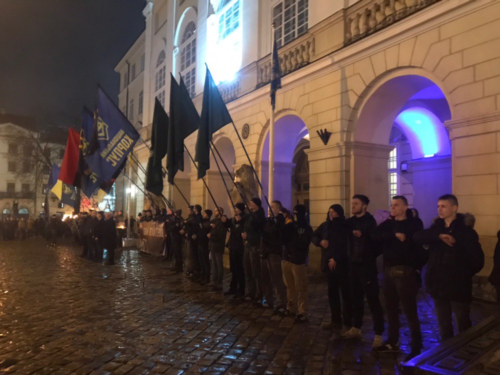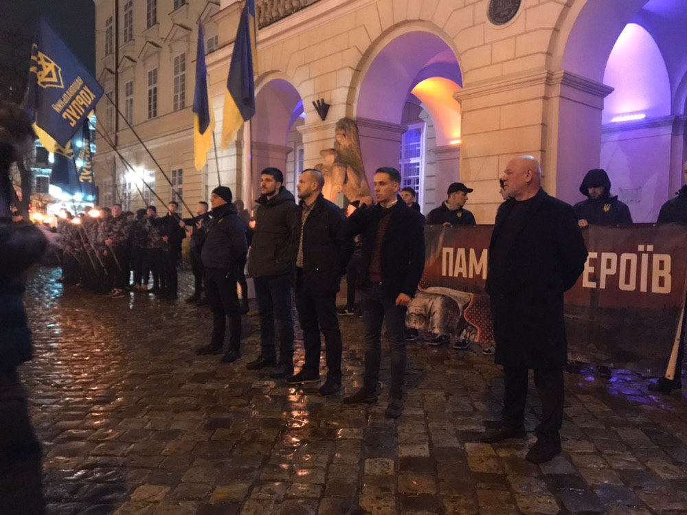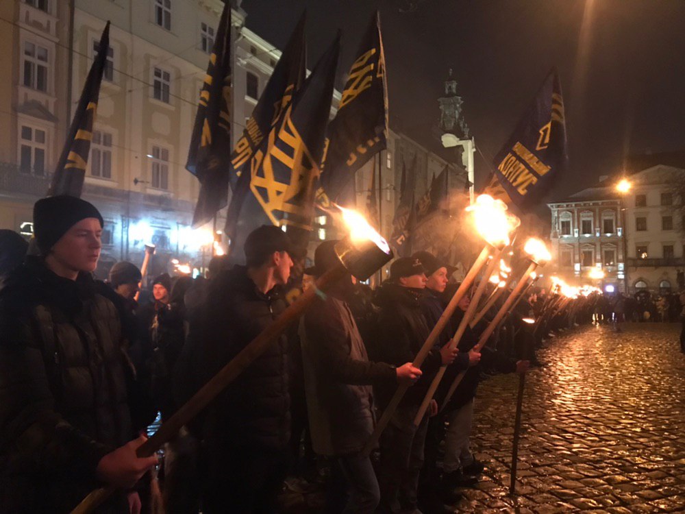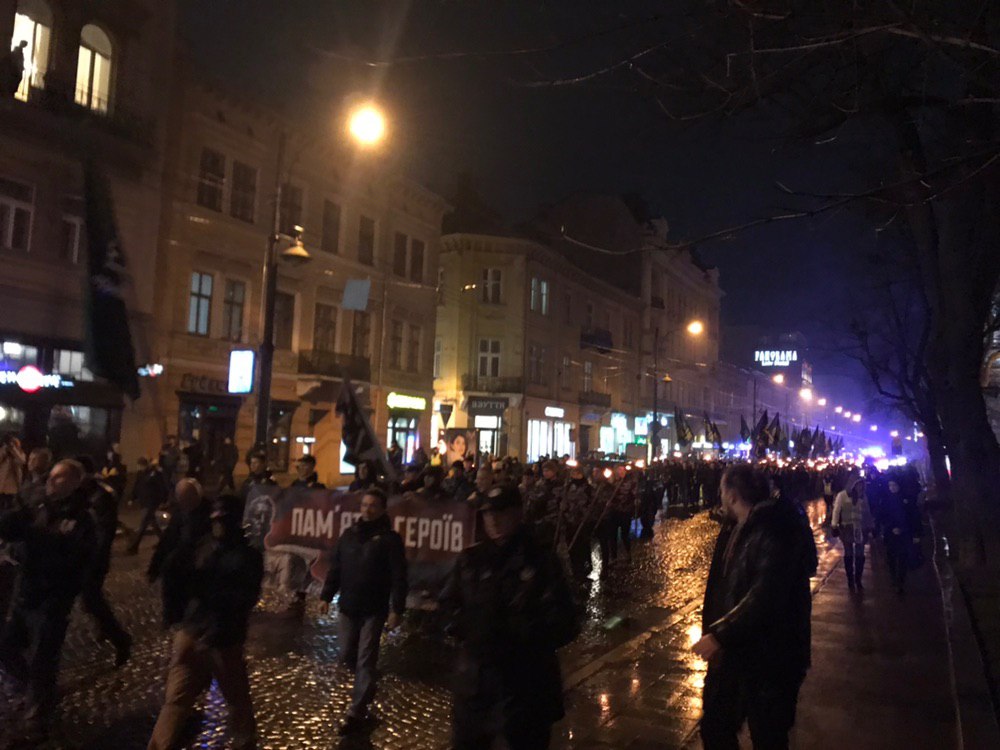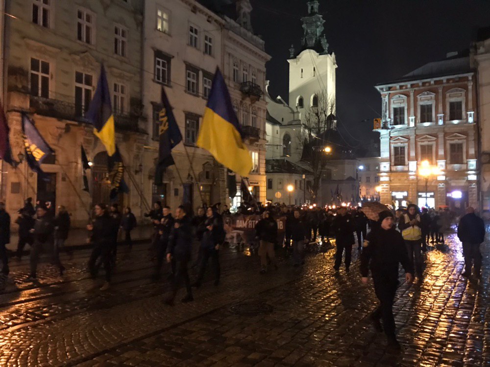 Націоналісти пройшли зі смолоскипами масштабним маршем від пам’ятника Степанові Бандері до площі Ринок. Учасники маршу нагадали українцям про величну постать українського визвольного руху, Героя України Романа Шухевича. Наприкінці заходу активісти Нацкорпусу зачитали Молитву Українського Націоналіста.