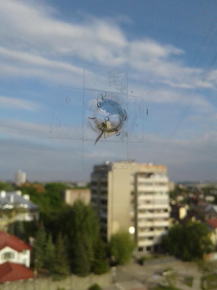 Постріли були у вівторок 26 травня біля 21:30. Внаслідок цих дій було пробите скло вхідних дверей магазину “Рукавичка” та вікно мешканця цього будинку!