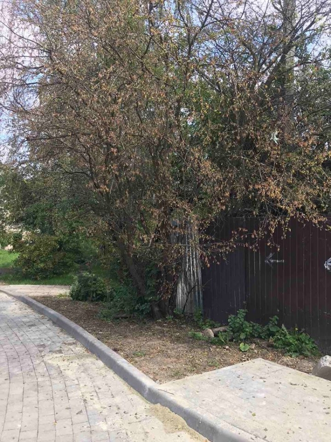 Висохлі дерева мають вік 25-30 років, тож, припускають в управлінні, їх навмисне полили мідновмісним розчином для знищення і збільшення кількості паркомісць біля будинків.