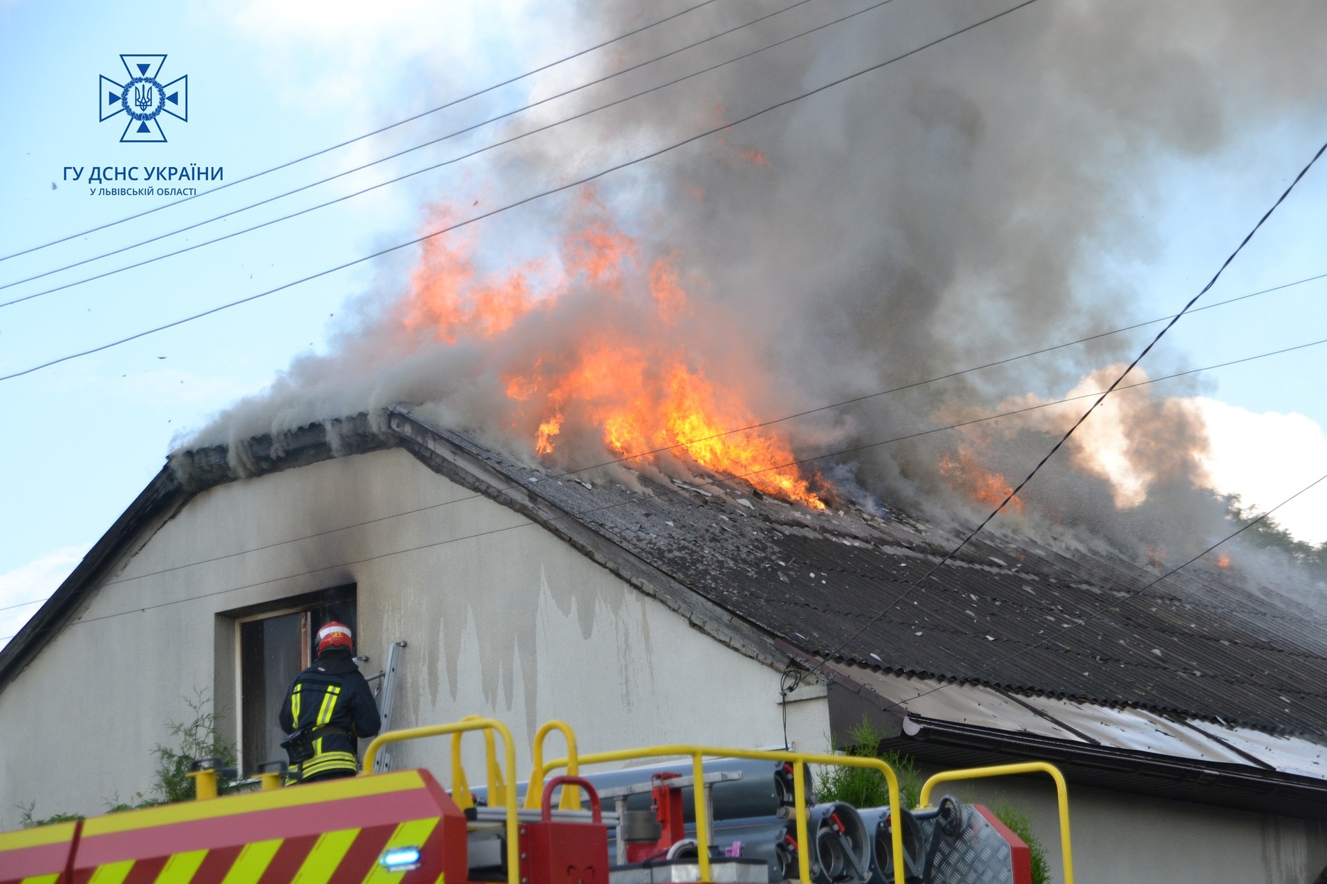 Як повідомили у ГУ ДСНС у Львівській області, на момент прибуття пожежників до місця виклику з даху будівлі вибивались язики полум’я.
