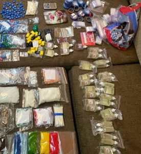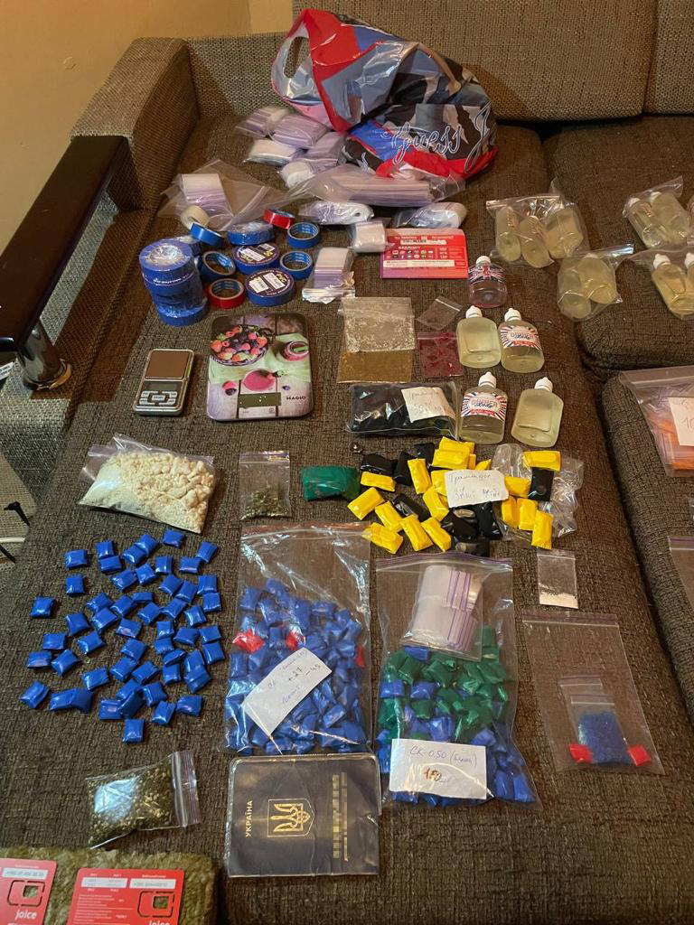 Окрім того, під час обшуку за місцем проживання затриманої правоохоронці виявили та вилучили: більше 400 зіп-пакетів із фасованою кристалічною речовиною, ззовні схожою на психотропну речовину «PVP», 7 зіп-пакетів із кристалічною речовиною загальною масою близько 1 кг, а також 34 флакони із прозорою рідиною із вмістом психотропної речовини «ТГК», пакунок з висушеними грибами, 20 згортків із порошкоподібною речовиною, 120 згортків з нарковмісними таблетками, 230 згортків із кристалічною речовиною, ззовні схожою на психотропи «PVP», 4 зіп-пакети із порошкоподібною речовиною, ззовні схожою на психотропну речовину «амфетамін» вагою близько 1,5 кг, засоби для фасування, електронні ваги та інші речові докази. Усе скеровано на експертне дослідження.