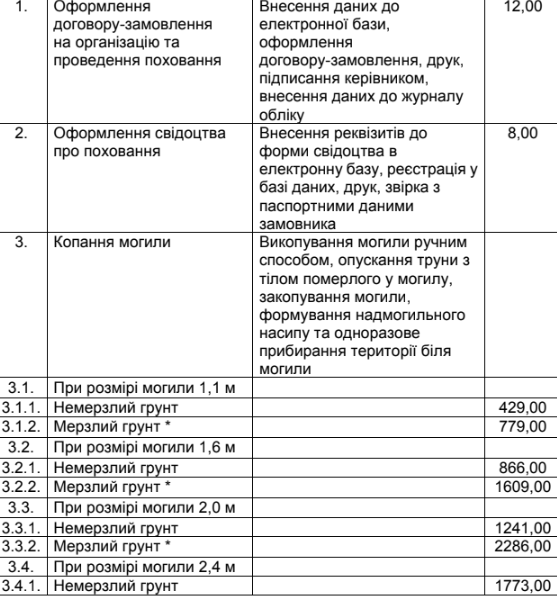Нагадаємо, відповідно до рішення виконавчого комітету, раніше було встановлено ЛКП «Виробничо-реставраційний комбінат обрядових послуг» тарифи на окремі види ритуальних послуг, які підлягають регулюванню, та тарифи на ритуальні послуги, які включено до мінімального переліку послуг на проведення безоплатного поховання померлих (загиблих) осіб, які мають особливі заслуги та особливі трудові заслуги перед Батьківщиною, учасників бойових дій та осіб з інвалідністю внаслідок війни й учасників національно-визвольних змагань.
