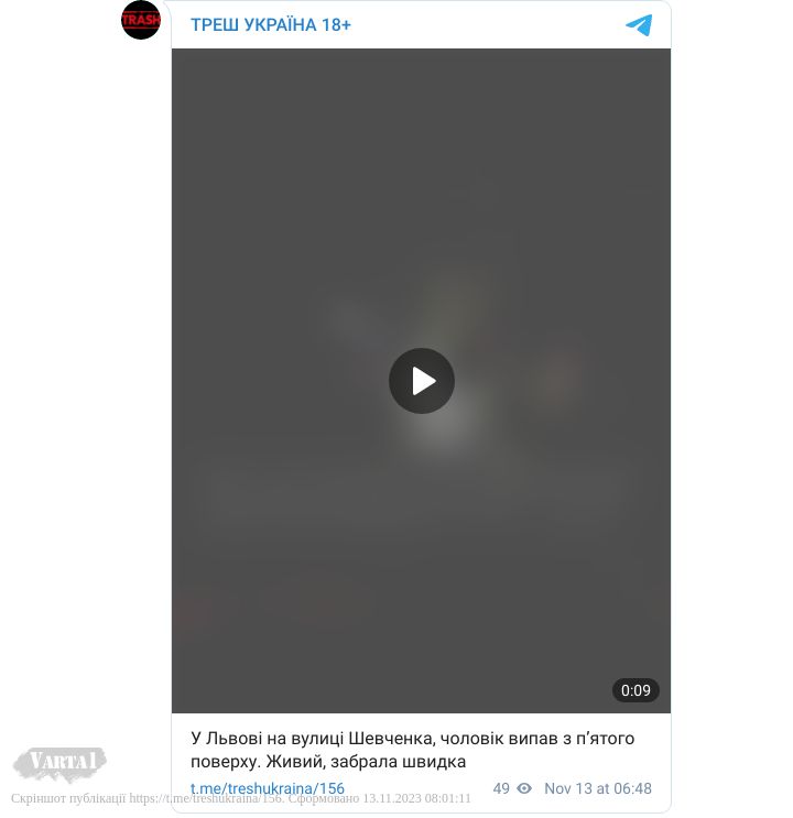 Про це з посиланням на повідомлення у соцмережах пише Варта 1.