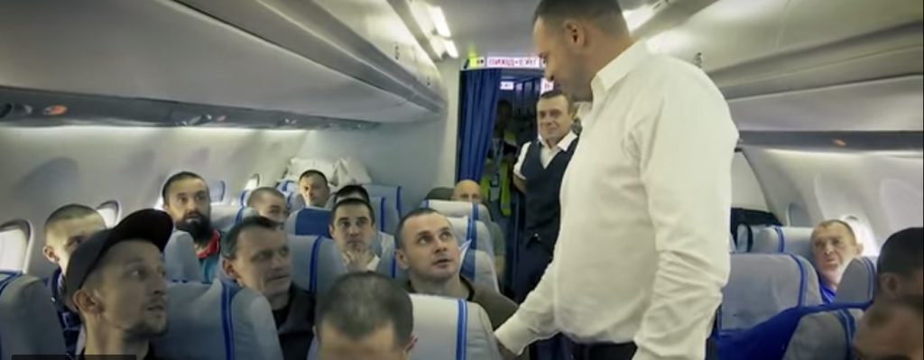 У Зеленського показали відео, як летіли з Москви Сенцов разом з іншими звільненими в’язнями Кремля.