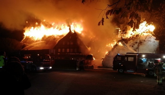 “Дах завалився просто на моїх очах. Тільки зовнішні стіни ще стоять”, – сказав представник району. На фотографіях, опублікованих у ЗМІ, видно метрові язики полум’я і сильний дим. Водночас були великі побоювання, що вогонь перекинеться на сусідні будівлі, але цьому вдалося запобігти.