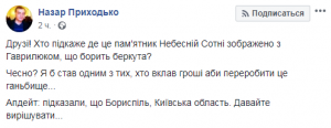 У мережі несподівано розгорівся скандал навколо пам’ятника Героям Небесної Сотні, який був встановлений в Борисполі ще 23 серпня 2014 року.