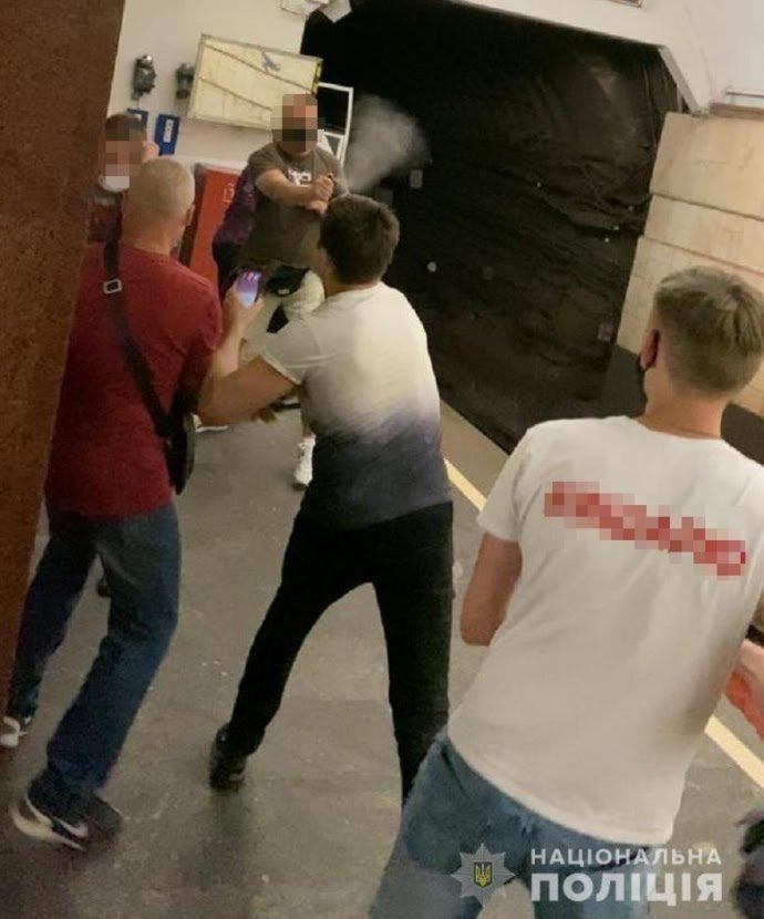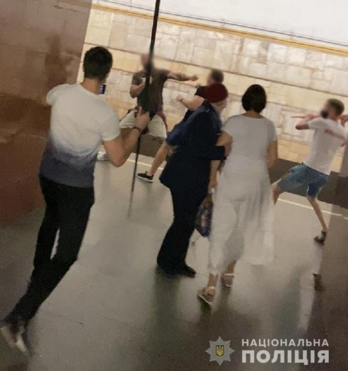На фото та відео видно, як чоловіки, серед яких є люди в футболках з емблемами Партії Шарія, за кимось женуться по станції. Загнавши двох чоловіків у глухий кут, вони нападають. З обох боків використовуються газові балончики, однак група-переслідувач більша за чисельністю і має при собі палиці. Ними вони починають бити ветерана.