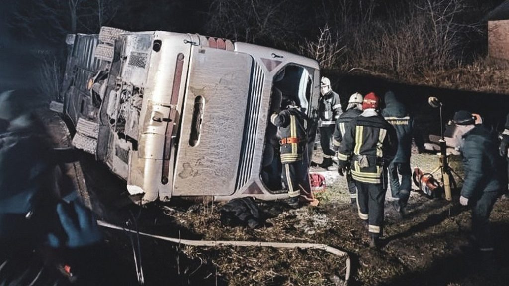 За попередньою інформацією правоохоронців, керманич автобуса не впорався з керуванням на слизькій дорозі, з’їхав у кювет і там перекинувся.