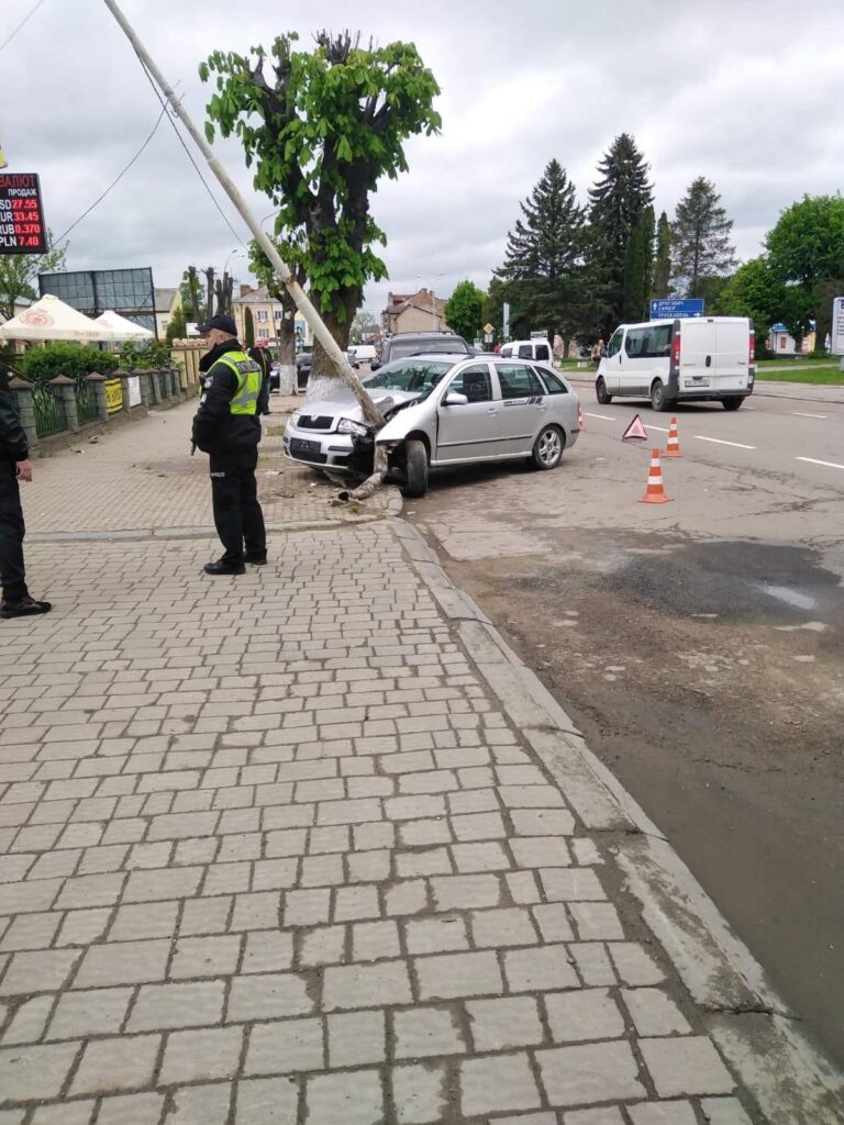 У центрі Борислава водій автомобіля Шкода влетів у стовп, відомо, що жертв немає.