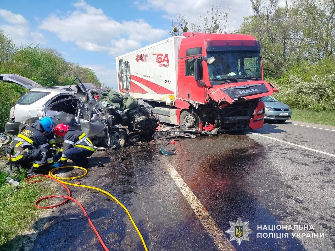 Від отриманих внаслідок ДТП травм 46-річний водій легковика та двоє його пасажирів, чоловіки віком 36 і 38 років, дані яких уточнюються, загинули на місці події.