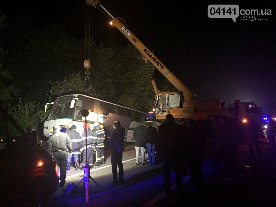 У результаті на місці пригоди загинули 9 пасажирів автобуса (повні анкетні дані встановлюються). Водія вантажівки та ще 9 пасажирів автобуса, віком від 42 до 71 року було госпіталізовано до Новоград-Волинської лікарні.