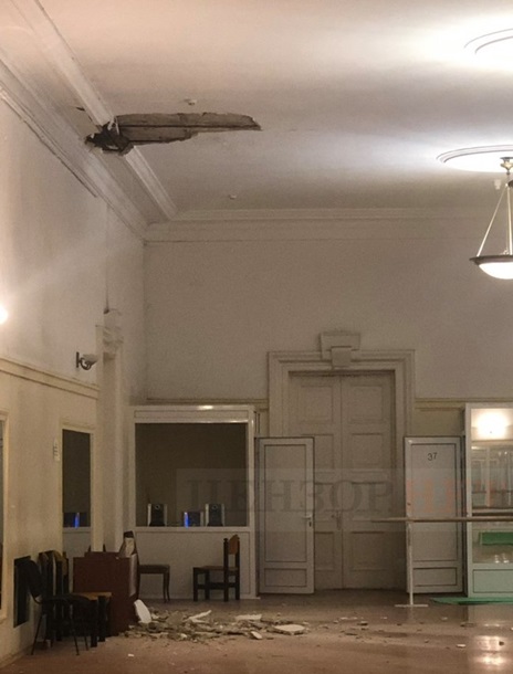 Обвал стелі в столичному Будинку вчителя. Фото: Цензон.НЕТ