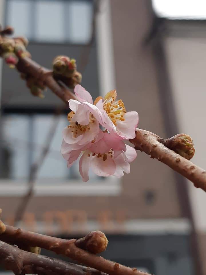 На Закарпатті, у місті Мукачево, серед зими зацвіла сакура.