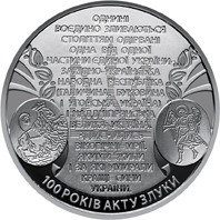 Національний банк України випустив пам’ятну монету на честь сторіччя Акту Злуки, який був підписаний між Українською народною республікою та Західноукраїнською народною республікою 22 січня 2019 року.