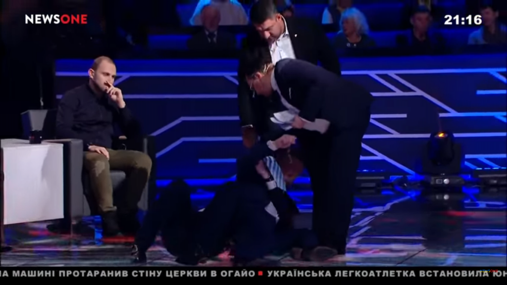 У відповідь на образу політолог Семченко назвав нардепа душвенохворим, після чого той збирався покинути шоу. “Зараз на мене п’ять хвилин лили відра лайна. Цей психічнохворий чоловік, який незрозуміло як опинився у Верховній Раді…”, – відповів Семченко, одразу ж після цих слів Мосійчук накинувся зі своєю тростиною на політолога та повалив його на підлогу із криками “вон на*й звідси!”. Розлючених чоловіків розборонили учасники ток-шоу та співробітники телеканалу. Пізніше Мосійчук знову завдав удар палицею зі словами “Він має зд*хнути!”