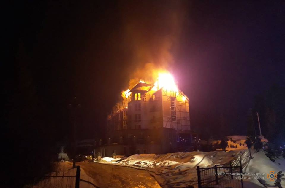 У ніч на 19 лютого у Славському загорілась чотирьохповерхова будівля з мансардою готелю бази „Терем“.
