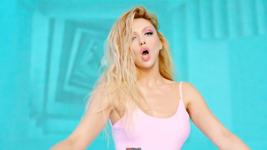 Співачка зображена у молочному топі на одне плече, латексних лосинах і сріблястих босоніжках на високій платформі та підборі. Її образ доповнила золота корона, хвиляста укладка і насичений макіяж з червоною помадою.