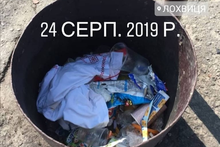 У Лохвиці (Полтавська область) невідомий викинув нову вишиванку в урну.
