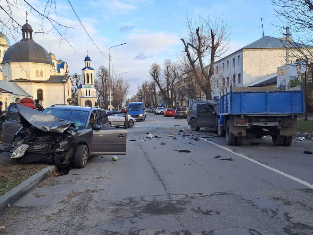Водій Тойота рухався по вулиці Львівській зі сторони Львова та проігнорував знак головної дороги, чим спричинив ДТП. У ДТП є двоє постраждалих з Вольксвагена та один чоловік-військовий.