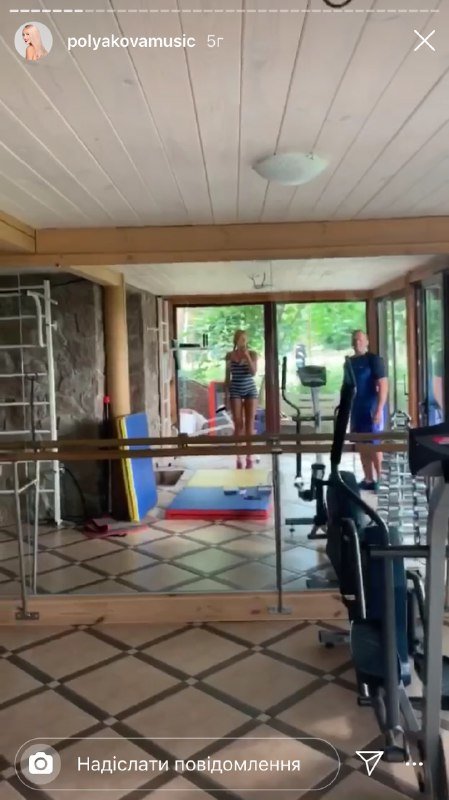 В Instagram-stories Полякова показала свої форми й заявила, що не використовує фотошоп для власних фото. Артистка записала відео з домашнього спортзалу, який вона продемонструвала своїм прихильникам.
