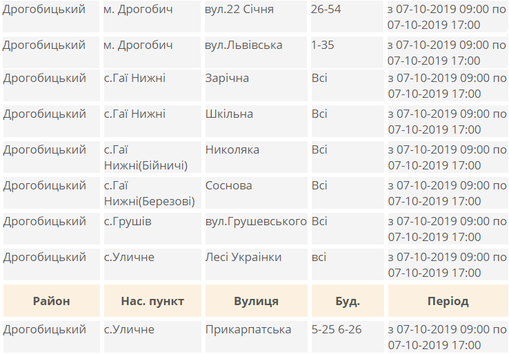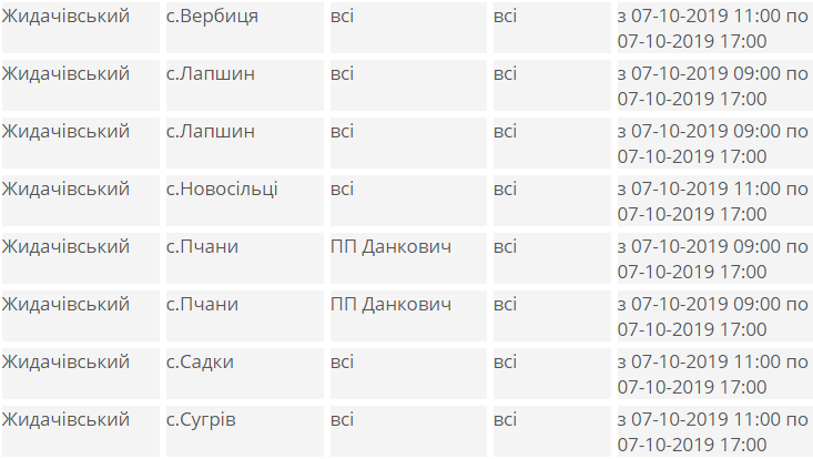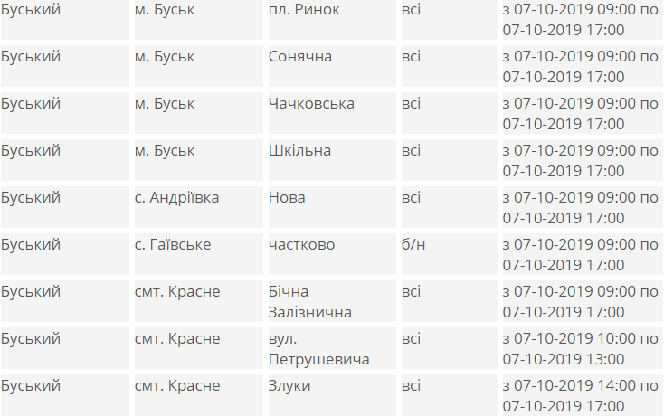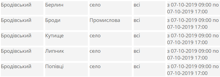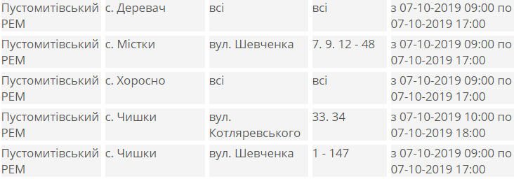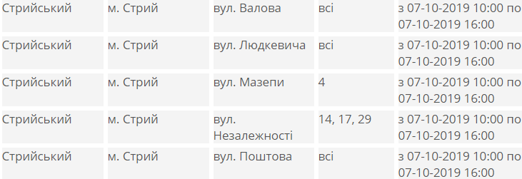 У понеділок, 7 жовтня, в частині Бродівського, Буського, Дрогобицького, Жидачівського, Мостиського, Миколаївського, Пустомитівського, Радехівського, Стрийського та Турківського районів Львівщини призупинять подачу електроенергії.
