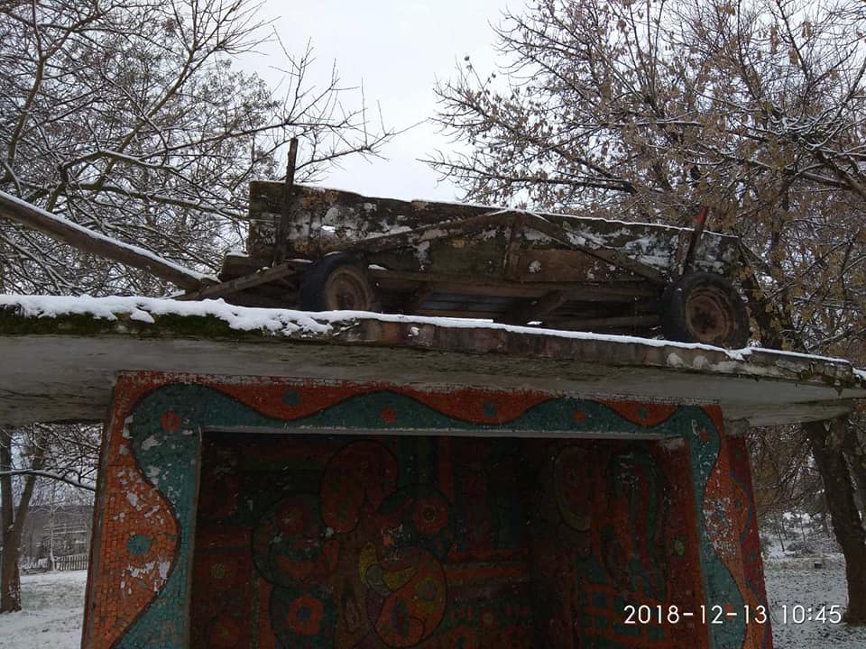 Очевидно, що старого воза невідомі встановили на зупинку вночі, з нагоди святкування Дня святого Андрія Первозваного, коли, за давніми українськими традиціями, єдиний раз в році можна робити збитки.