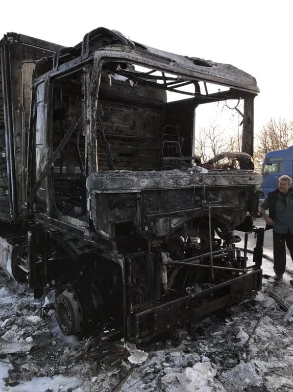 Пожежу ліквідували о 19:13. Вогонь повністю знищив кабіну водія, а також тент причепу на площі 4 м2. За кермом був водій, 1953 року народження, який внаслідок пожежі не постраждав