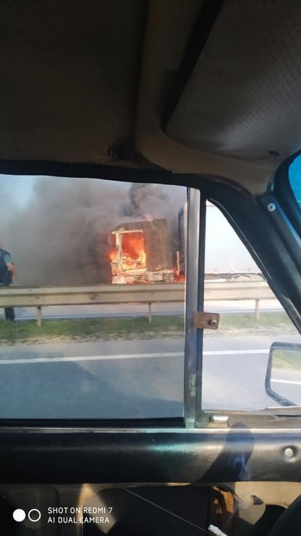 Повідомлення про пожежу в вантажному автомобілі Renault Magnum, який перевозив мінеральну воді, надійшло до рятувальників о 18:37. Фура загорілася під час руху.
